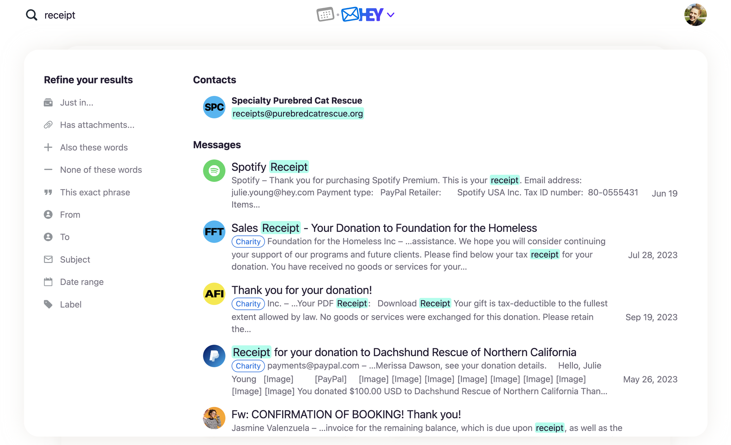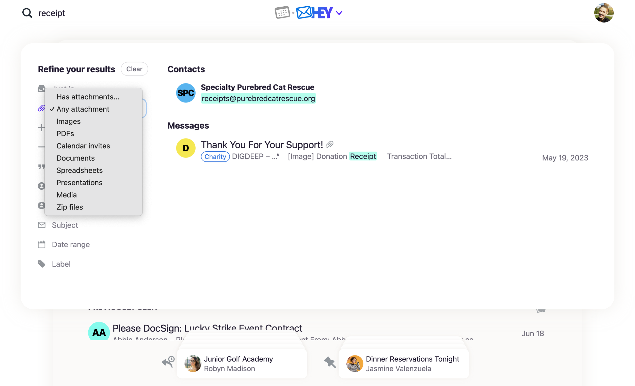 When you’re looking for an email, it’s often the one with an attachment, like a receipt for your gym membership or tickets to a local comedy venue. We added an option in the search sidebar that lets you filter results by whether it has an attachment.